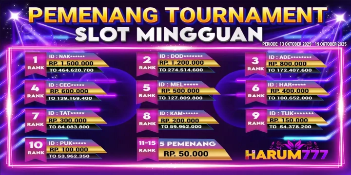 Agen Online Game Harum 777 memberikan berbagai jenis bonus dan promo kepada seluruh pelanggan nya mulai dari bonus untuk para pelanggan baru , bonus untuk para pelanggan setia, bonus yang di berikan setiap minggu nya serta turnamen yang di sediakan. Bonus dan promo ini bertujuan untuk memberikan nilai lebih dari permainan dan meningkatkan kesempatan para pelanggan memenangkan hadiah yang besar. Tetapi perlu di garis bawahi Agen Harum777 memiliki aturan pada setiap bonus dan promo yang di tawarkan. Hal ini bertujuan untuk memastikan agar Bonus dan Promo yang di tawarkan secara adil dengan persyaratan yang ada.